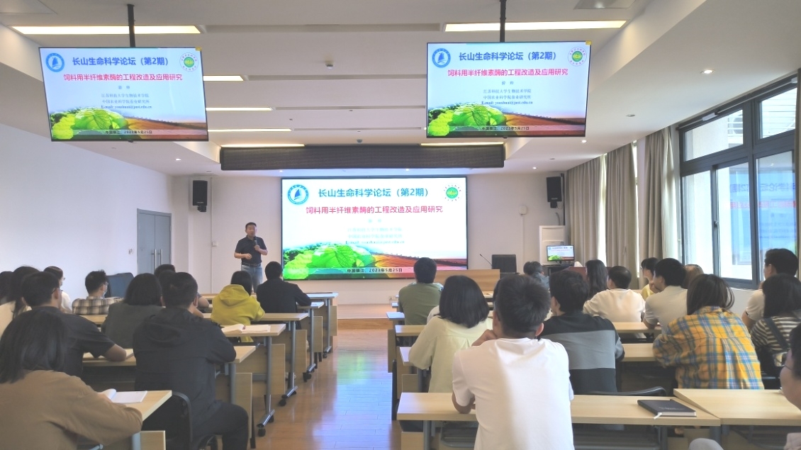 2023年5月25日下午,长山生命科学论坛(第2期)学术报告在太阳集团330会议室顺利举办,游帅和王学杨两位老师结合入职以来工作经历,分别作了题为《饲料用半纤维素酶的工程改造及应用研究》《基于双组学联合分析研究家蚕抗甲氰菊酯的分子机制》的学术报告。
