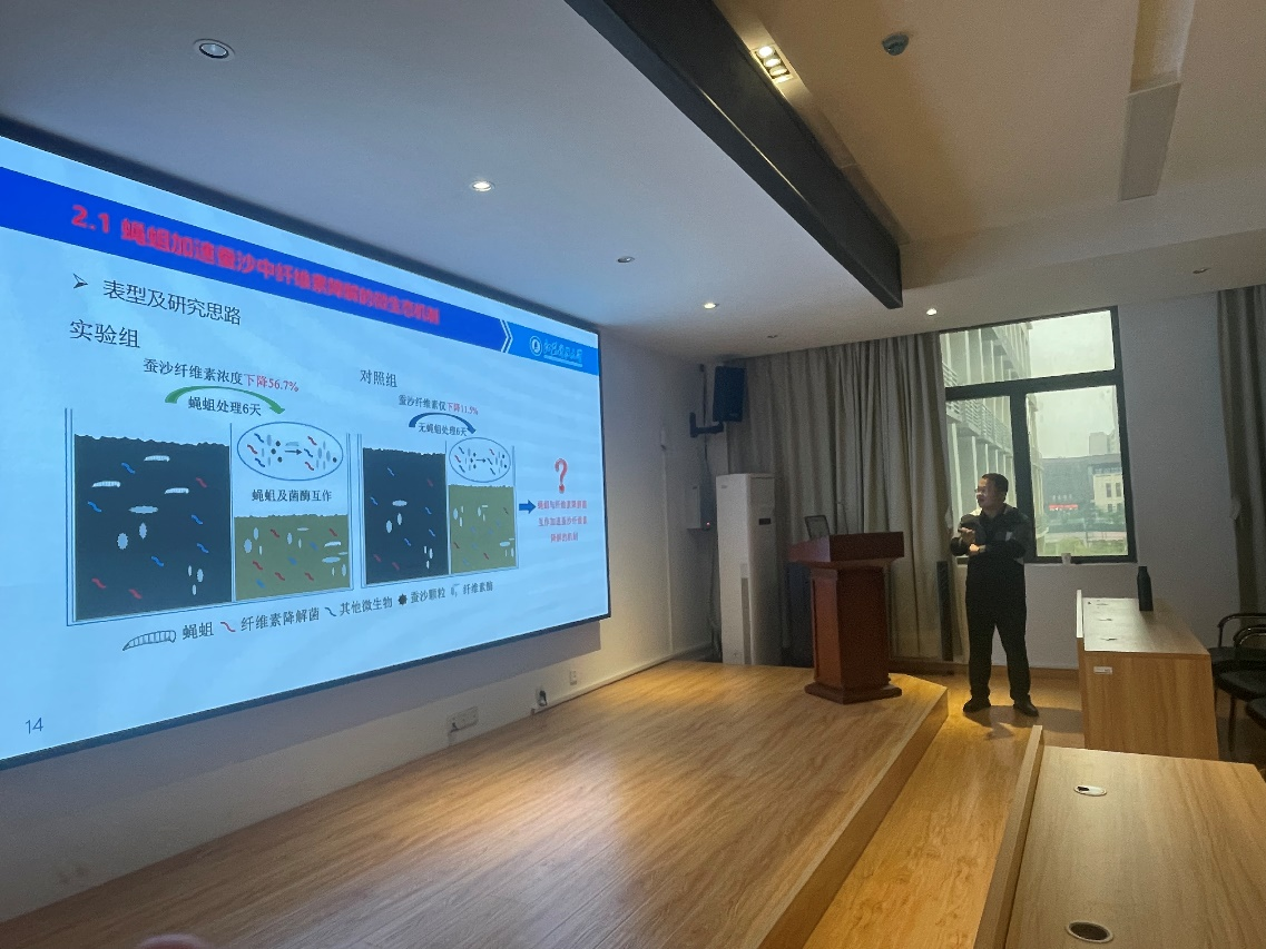 蝇蛆生物转化有机质是一种由蝇蛆和微生物共同驱动的复杂生理生化过程,不但能将农业废弃物转化为均匀且稳定的类腐殖质化合物,收获丰富的虫体蛋白,还能加速其中有害和难降解物质的降解,在蚕沙等富含纤维素农业废弃物的生物转化处理领域具有显著优势。李豪老师通过构建蝇蛆高效转化蚕沙体系,对蝇蛆与纤维素降解菌互作加速蚕沙中纤维素降解的微生态学机制进行了深入解析。
