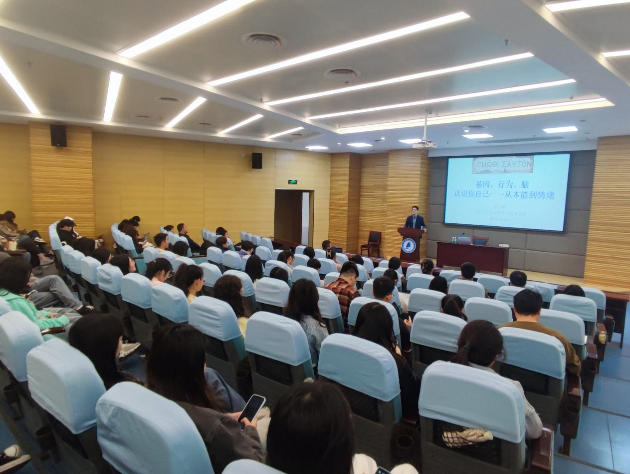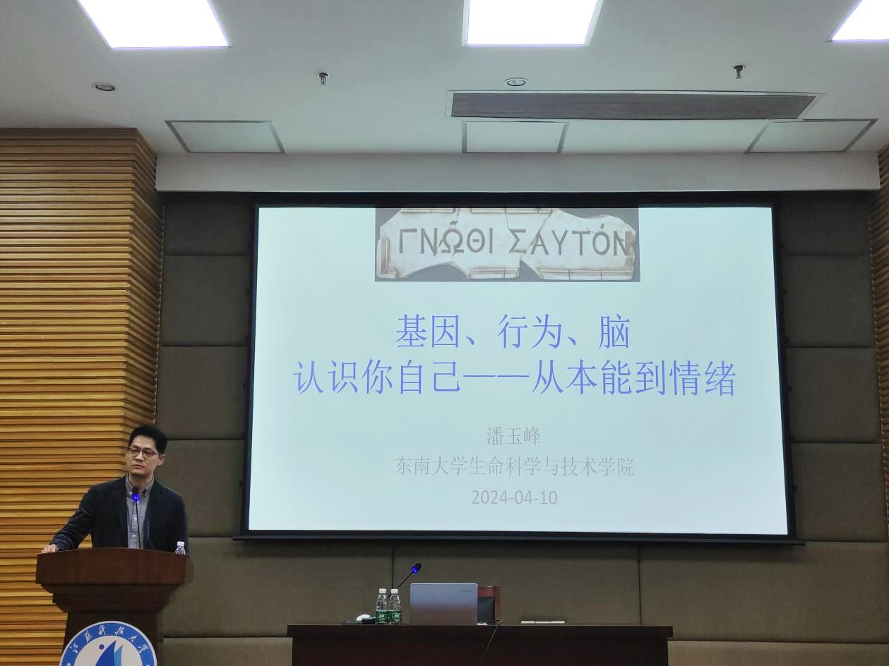 2024年4月10日下午,长山生命科学论坛(第20期)暨《生物学前沿》学术报告在江苏科技大学长山校区图书馆B101报告厅顺利举办,东南大学生命科学与技术学院潘玉峰教授为所院师生作特邀报告《基因、行为、脑:从本能到情绪》。