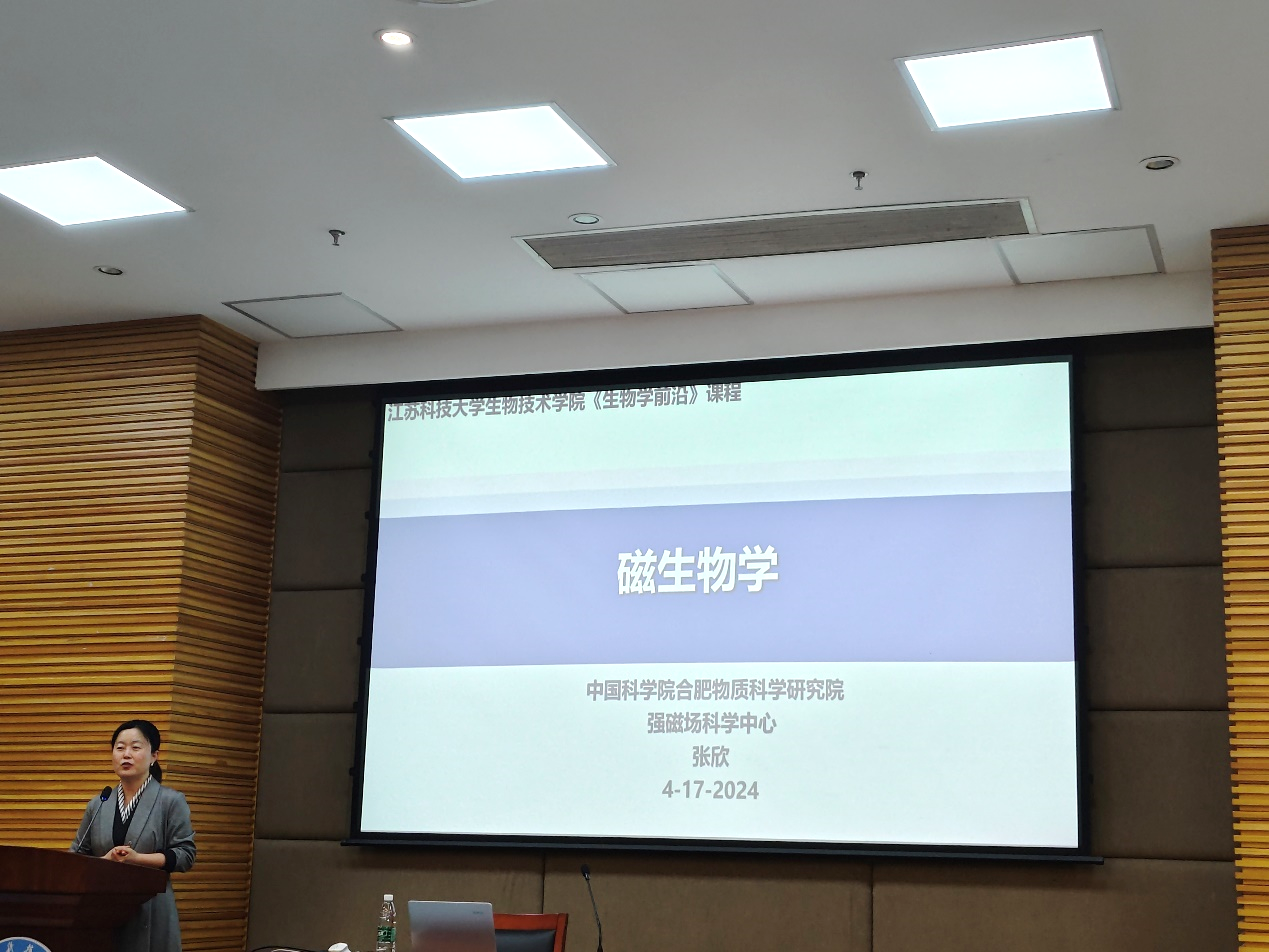 2024年4月17日下午,长山生命科学论坛(第22期)暨《生物学前沿》学术报告在江苏科技大学长山校区图书馆B101报告厅顺利举办,中国科学院合肥物质科学研究院强磁场科学中心张欣研究员为所院师生作特邀报告《磁生物学》。