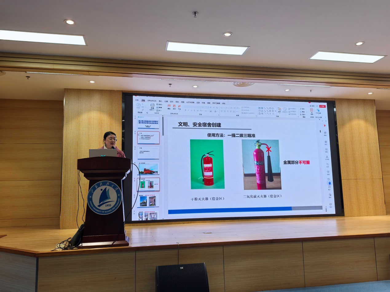 动员大会结束后,学院随即开展宿舍管理与宿舍安全专题讲座,讲座由公寓中心东片区主任王莉华主讲。王主任首先围绕宿舍规章制度、宿舍文化建设、日常行为规范等内容展开讲解,强调宿舍作为学生在校期间的重要生活空间,是育人工作的关键阵地,要求全体新生自觉遵守宿舍管理规定,营造整洁、文明、和谐的宿舍氛围,培养良好的生活习惯与集体意识。随后她结合宿舍安全典型案例,重点围绕消防安全、用电安全、财产安全等方面进行详细解读。系统讲解了宿舍违规用电的危害、灭火器的使用方法、防盗防骗技巧等实用知识,提醒全体新生提高安全防范意识,杜绝违规用电行为,妥善保管个人财物,掌握基本的安全应急处理能力,共同筑牢宿舍安全防线。